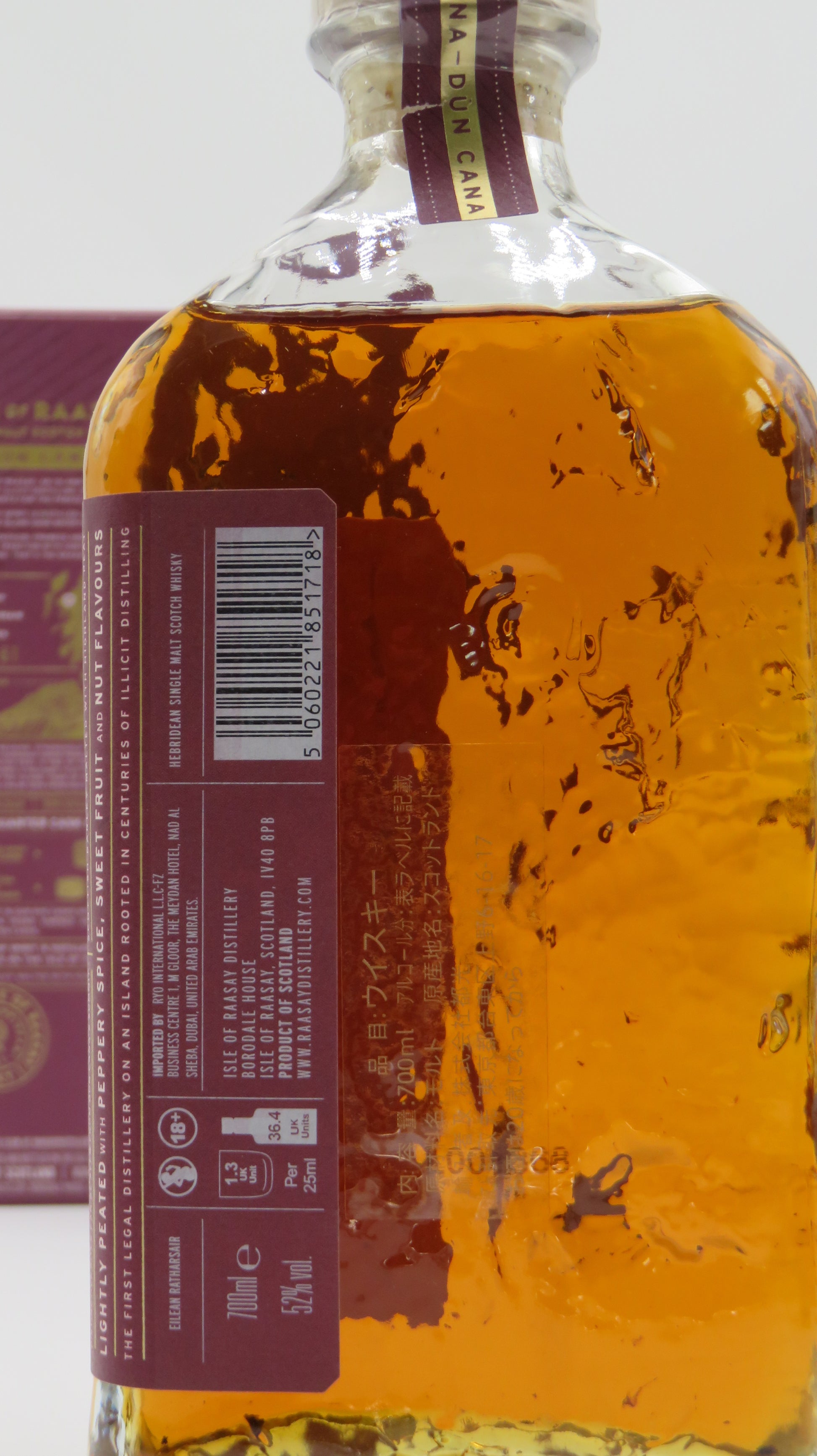 スコットランド・ヘブリディーズ諸島に位置するアイランズ蒸留所「アイル・オブ・ラッセイ」が手掛ける限定シリーズ“ダン・カナ”の第一弾。蒸留所が理想とする“島のテロワール”を表現するため、原酒はすべて自社アイランドで生まれ育ったスピリッツのみを使用しています。