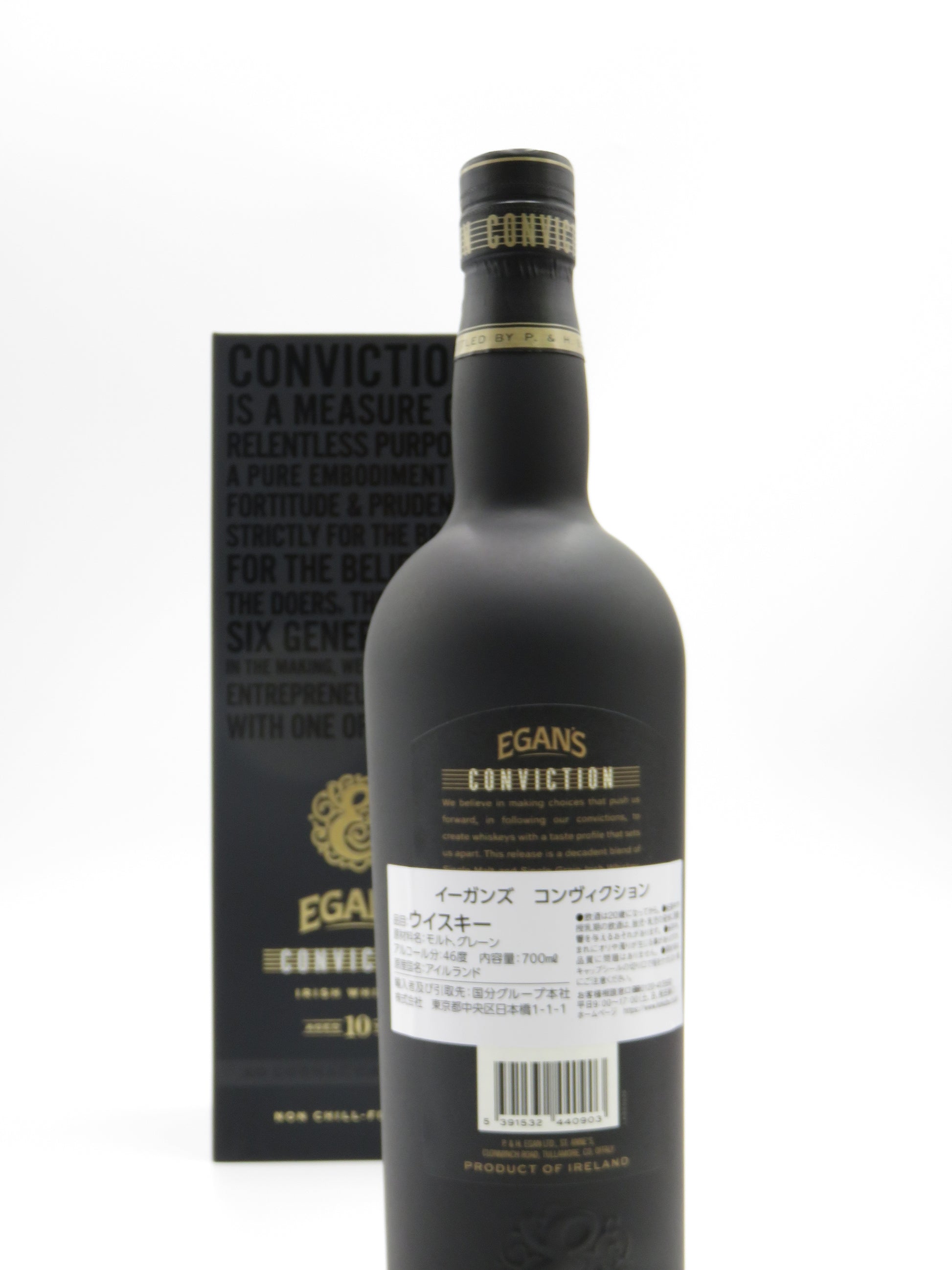 「イーガンズ 10年 コンヴィクション」は、アイルランドの伝統を受け継ぐイーガンズ社がリリースするシングルモルトウイスキーです。バーボン樽とポートワイン樽で熟成を経ることで、華やかさと深みを併せ持つ味わいが特徴となっています。