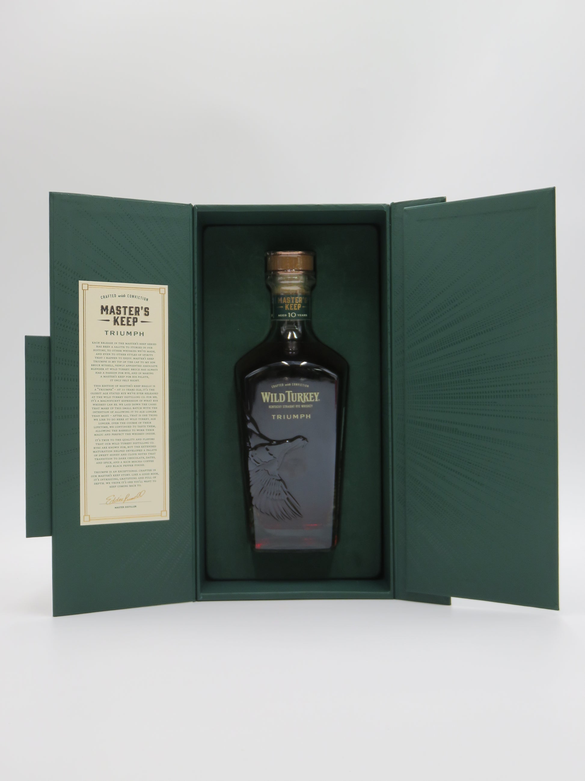 ワイルドターキーの限定シリーズ「マスターズキープ」から登場した「トライアンフ」は、10年以上熟成されたケンタッキー・ストレート・ライウイスキーです。このシリーズでは初となる長期熟成ライであり、ライウイスキーの持つスパイシーさに、熟成樽由来の深い甘みとまろやかさが見事に調和しています。