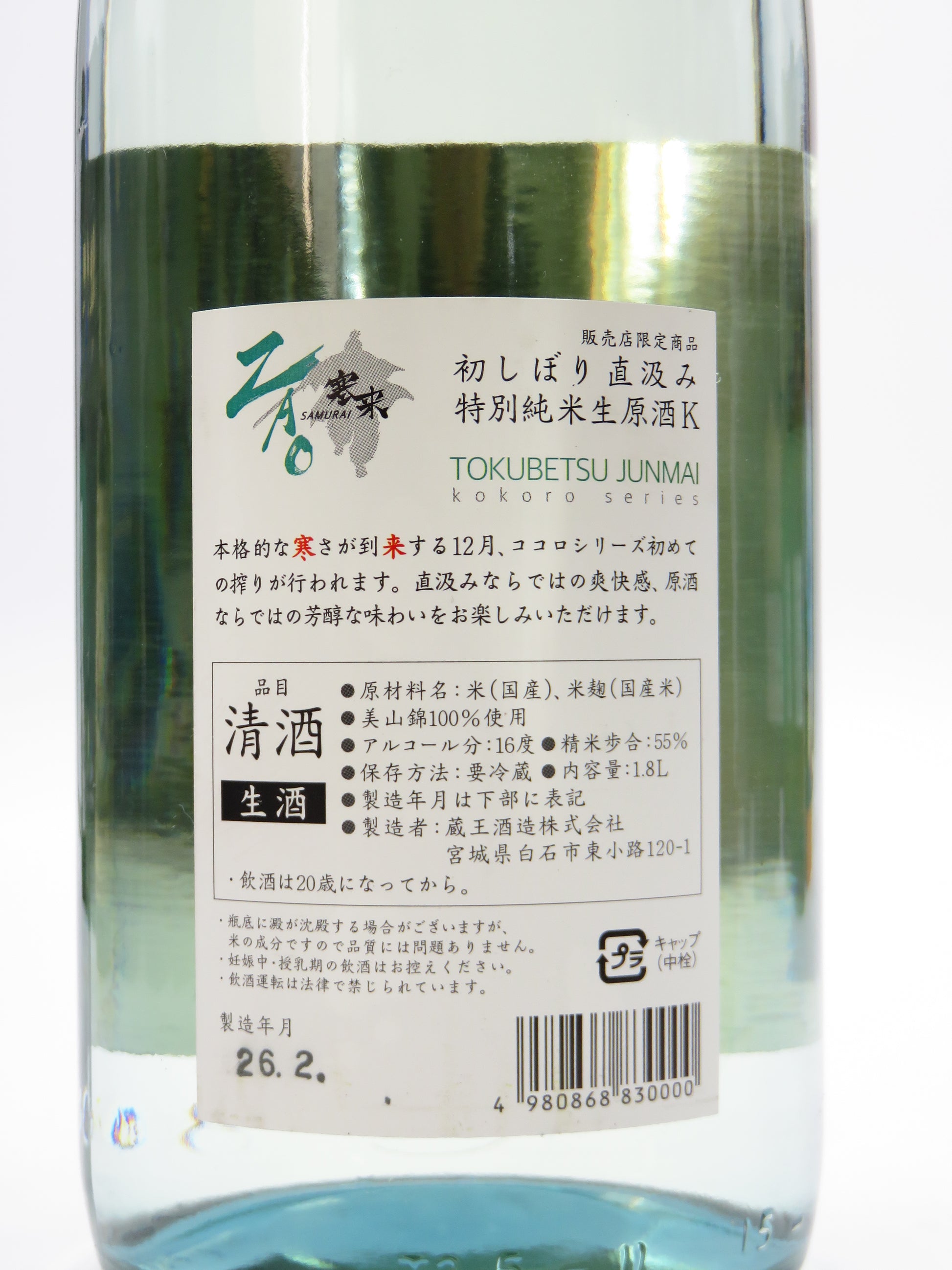 蔵王 初しぼり直汲み 特別純米生原酒『K』寒来(SAMURAI)
