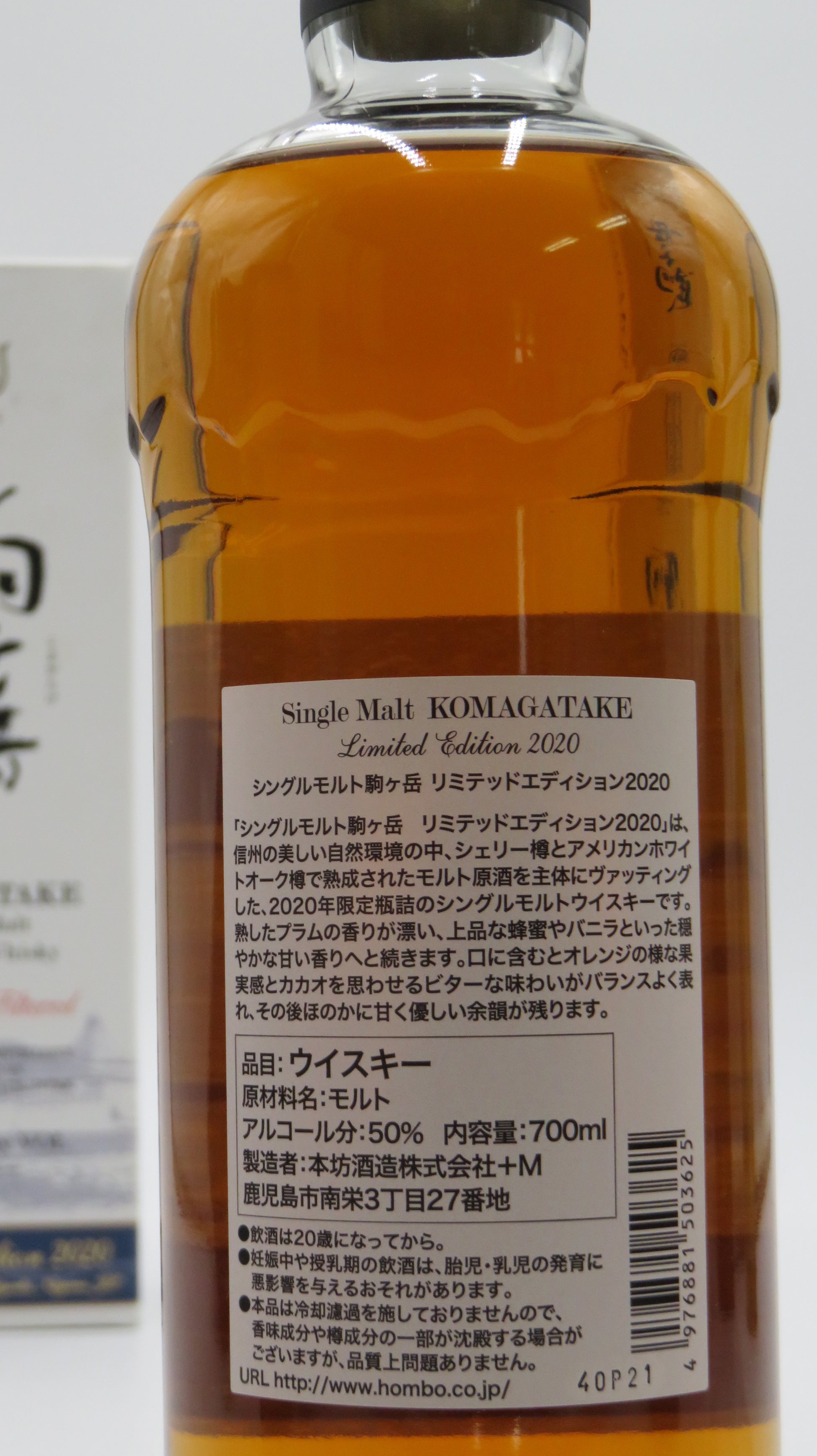 駒ヶ岳リミテッドエディション2020は、マルス信州蒸溜所がその年の個性を映し出す原酒を厳選し、丁寧にヴァッティングした数量限定のシングルモルトです。冷涼で寒暖差の大きい信州の環境が、奥行きのある味わいと美しい熟成感を育んでいます。