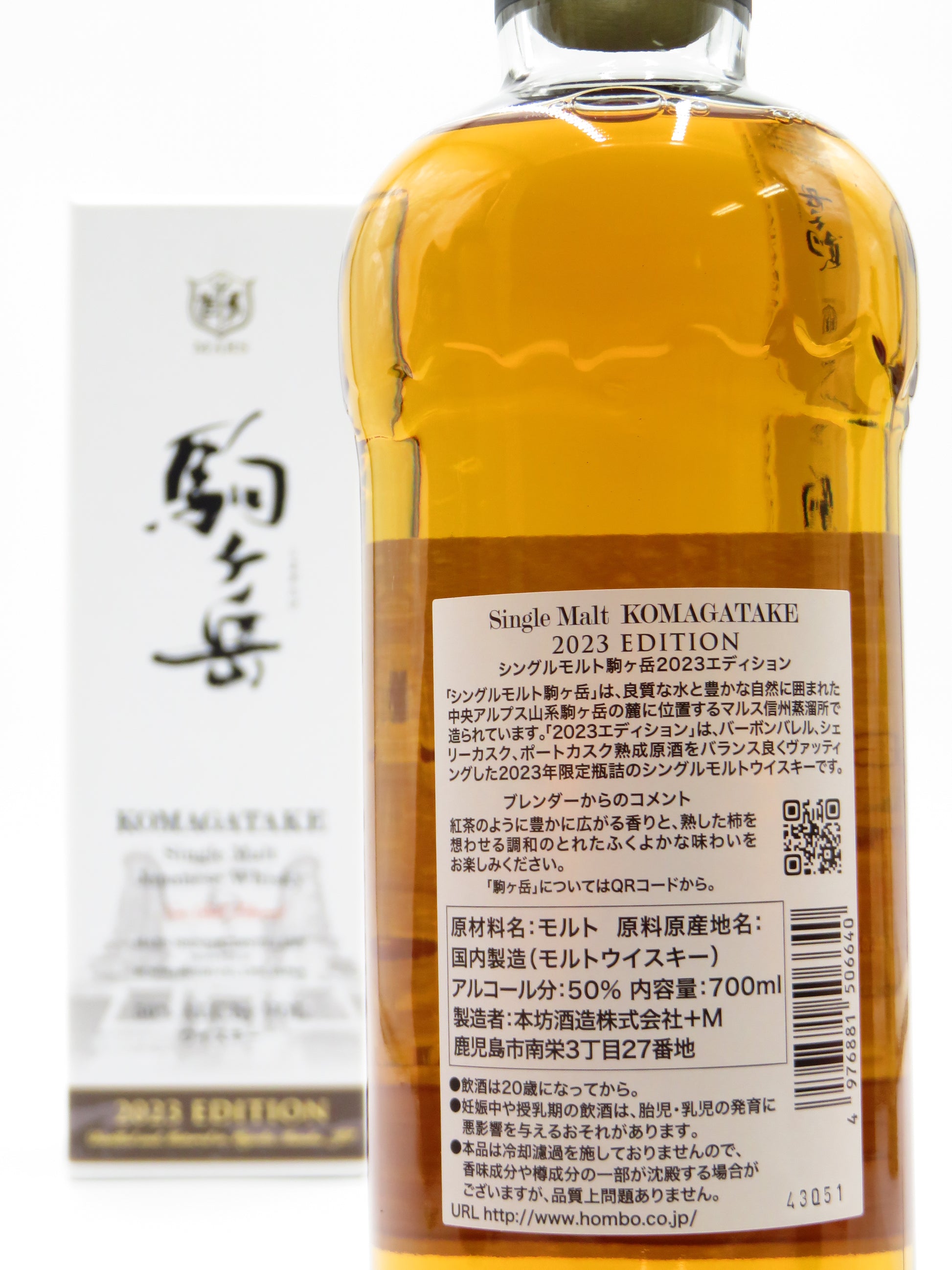 「駒ヶ岳 シングルモルト 2023エディション」は、信州の冷涼な気候で熟成させた原酒を中心に、バーボン樽・シェリー樽・ポート樽熟成原酒をバランスよくヴァッティングした限定リリースです。